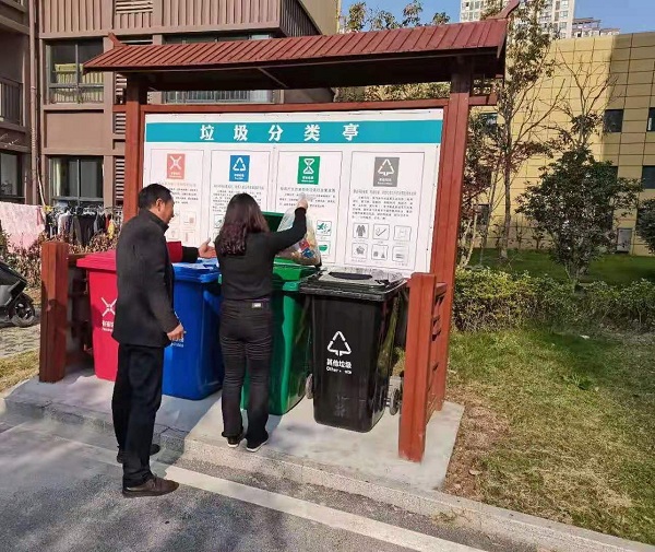 健全配套實(shí)施,規(guī)范抓的標(biāo)準(zhǔn)。無城鎮(zhèn)積極配合無為市城管局在每個(gè)居民小區(qū)、村安裝1-2個(gè)垃圾分類亭,按照四分類法設(shè)置垃圾桶:可回收物、有害垃圾、餐廚垃圾、其他垃圾,并在垃圾分類亭張貼投放時(shí)間、督導(dǎo)員以及監(jiān)督電話。每個(gè)垃圾分類亭配備督導(dǎo)員,指導(dǎo)居民按照垃圾所屬類別精準(zhǔn)投放,在實(shí)踐中規(guī)范標(biāo)準(zhǔn),逐步引導(dǎo)群眾廣泛參與文明分類新風(fēng)尚。