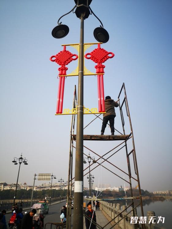 細心的市民發現,自2020年底開始,橫跨無城環城河的狀元橋上增添了濃濃的“中國風”,這是無為市城管局率先在狀元橋路燈桿上安裝的紅色“中國結”扮靚了橋周邊的夜色。