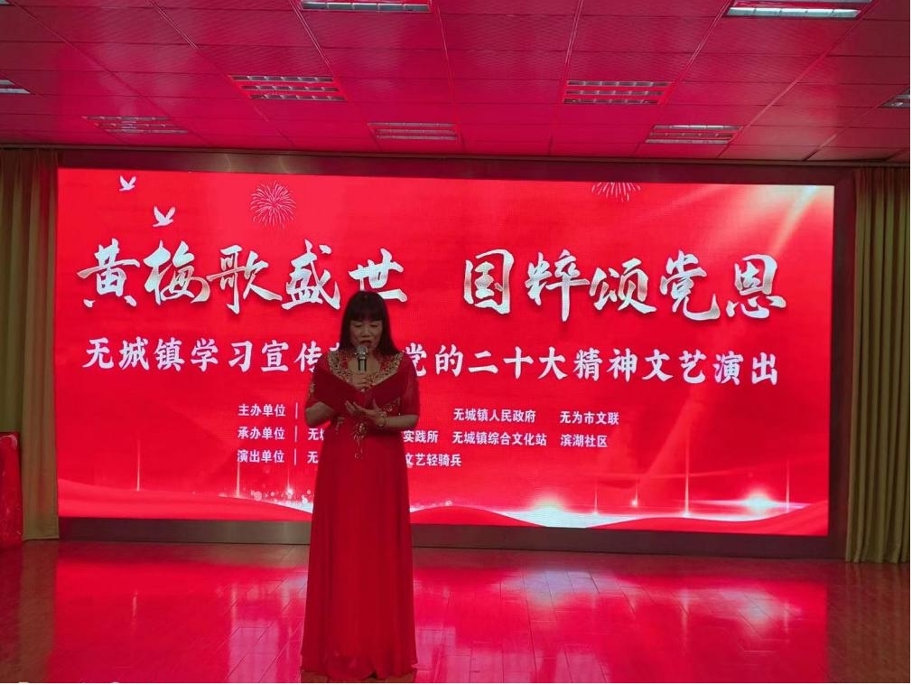 11月21日下午,無城鎮《黃梅歌盛世 國粹頌黨恩》在濱湖社區三樓活動室舉行。