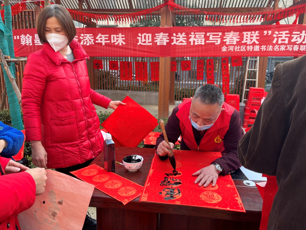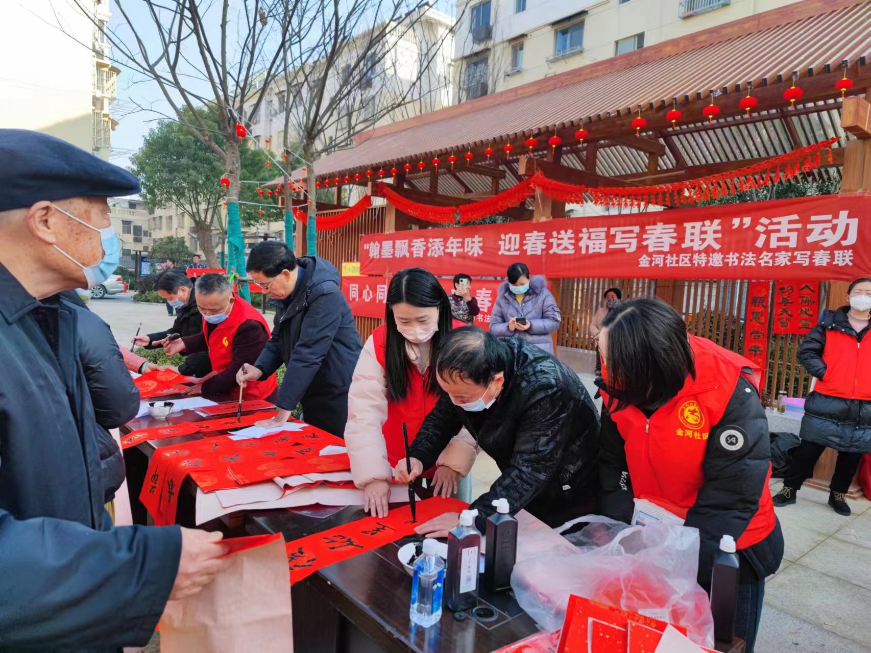 此次活動在府苑小區廣場舉辦,現場設立多個小會場。主要包括邀請蕪湖市知名書法家們現場為居民免費義寫春聯、送春聯的活動,現場只見書法老師們傾情揮墨,一幅幅風格多樣、祝福滿滿的春聯和“福字”呈現在大家眼前。活動現場人頭攢動,氣氛熱烈,連連稱贊,個個都拿到自己心儀的“春聯”喜笑顏開。另金河社區將新年的首次道德講堂也在同時開展,讓大家宣傳身邊的好人好事,倡導人人爭做道德建設的參與者和先行者,展風采環節更是有表演者現場表演古典舞蹈。