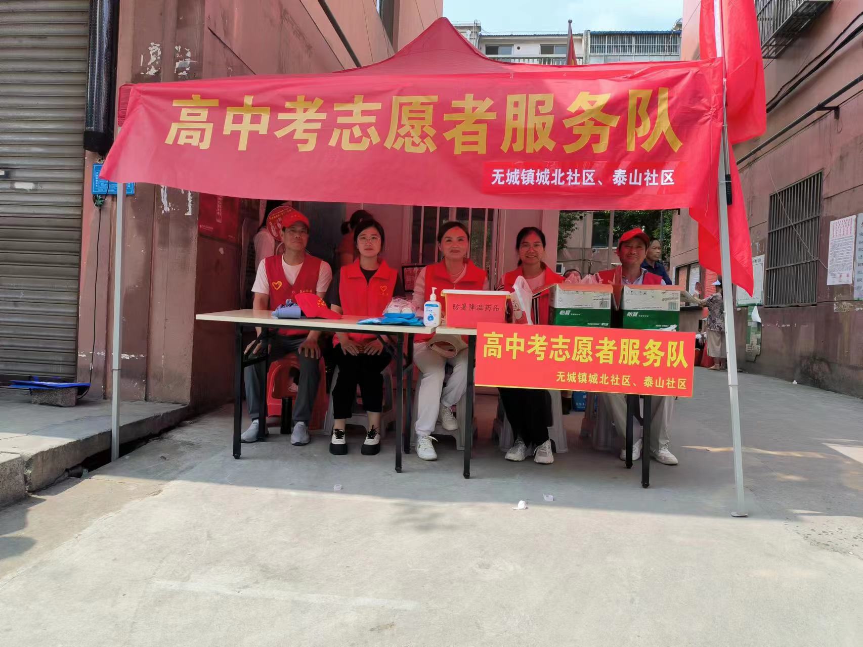 高考期間,為給廣大考生營造出和諧安寧的考試環境和提供優質的便民服務,無城鎮泰山社區組織志愿者開展了愛心助考圓夢未來志愿服務活動。