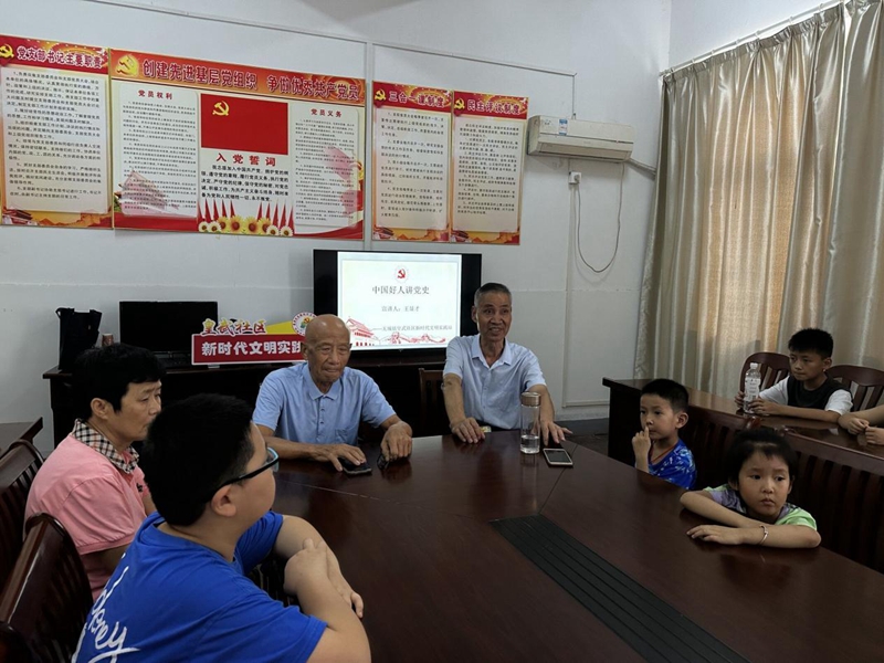 紅色教育環(huán)節(jié)中,無城鎮(zhèn)皇武社區(qū)邀請(qǐng)“中國(guó)好人”王顯才同志,以講故事的形式,用生動(dòng)形象的話語向青少年們講述黨的歷史進(jìn)程。此外,志愿者還通過社區(qū)紅色走廊,向青少年講解黨的發(fā)展歷程中先進(jìn)歷史人物的光輝事跡,充分激發(fā)了青少年們愛黨愛國(guó)情懷。