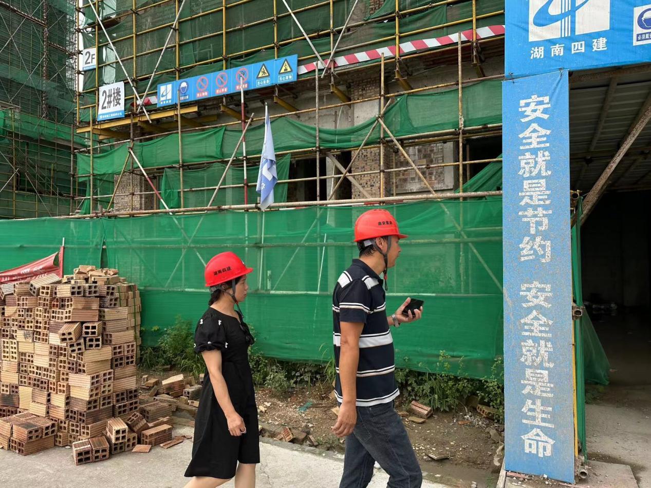 在建設工地現場,無城鎮皇武社區黨總支書記向工地負責人了解工地建設情況,對建筑工地上的相關設施進行安全檢查。同時對在炎熱天氣下的施工作業提出了相關要求,她表示:“工地施工方要嚴格按照施工安全程序進行施工生產作業,調節好工作時間,錯開高溫以防工人中暑。對施工作業中出現的違規行為要嚴肅對待,不要有任何思想松懈和僥幸思想,要嚴抓督促。”