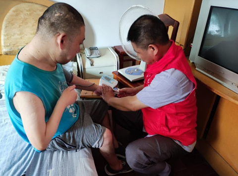 在居民家中,社區工作人員協助衛生服務站醫護人員,為居民進行了量血壓、量血糖等常規的身體檢查,而后醫護人員仔細詢問了居民的日常生活方式,并給出了專業的指導意見,倡導居民多食用瓜果蔬菜,清淡飲食,保持良好的生活習慣。對待社區內的部分特殊群體居民,除了常規的檢查和日常詢問之外,醫護人員還對患者及其家屬進行了精神衛生及心理衛生方面的指導,叮囑家屬一定要時刻關注患者精神狀況。