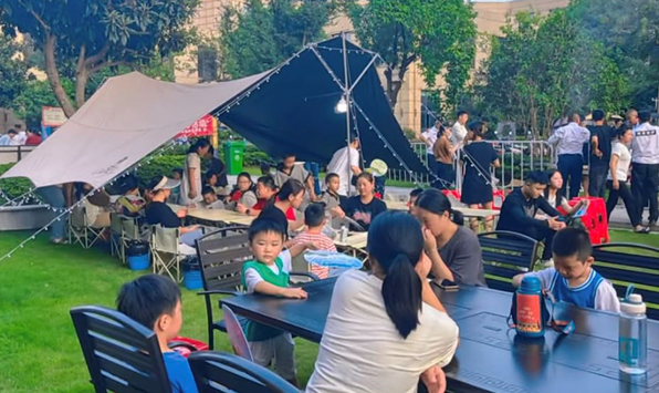 一場光影盛宴,一段愜意的歡聚時光。活動中,人頭攢動,歡聲笑語。每個區(qū)域點都有不少業(yè)主積極參與,鄰里間、親子間親密互動,其樂融融。“都說淄博燒烤好,我們小區(qū)的燒烤更好!燒烤節(jié)像過年一樣熱鬧,給物業(yè)點贊!”參與的業(yè)主們有序排隊,爆米花噼里啪啦、烤肉在燒烤架上滋滋作響,耳熟能詳?shù)那鷺凤h散在空中,燒烤師傅們在美妙的音樂中展示著獨具個性的燒烤手藝,各種食材在炭火的燒烤中散發(fā)出陣陣香味,大人們結(jié)伴而行,小朋友在一旁嬉戲玩耍,歡樂的氛圍彌漫在小區(qū)內(nèi)。