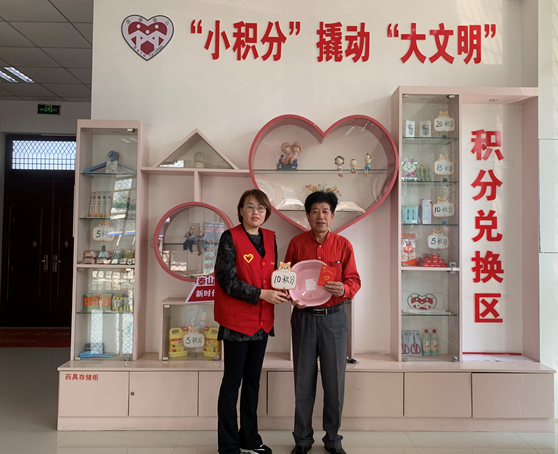 “我這個(gè)月參加了無(wú)紡集體宿舍小區(qū)的環(huán)境衛(wèi)生整治、水岸怡和花園的治安巡邏活動(dòng),獲得了10個(gè)積分,這個(gè)洗臉盆就是我剛剛用積分兌換的,現(xiàn)在大家湊在一起,聊得最多的就是誰(shuí)的積分最多,有時(shí)候社區(qū)有活動(dòng),我也會(huì)約著鄰居們一起參加,我是黨員,我愿意為社區(qū)志愿服務(wù)貢獻(xiàn)一點(diǎn)自己的微薄力量。”今年65歲的居民戴大叔,在管理員的登記下,兌換到了所需的生活物品。