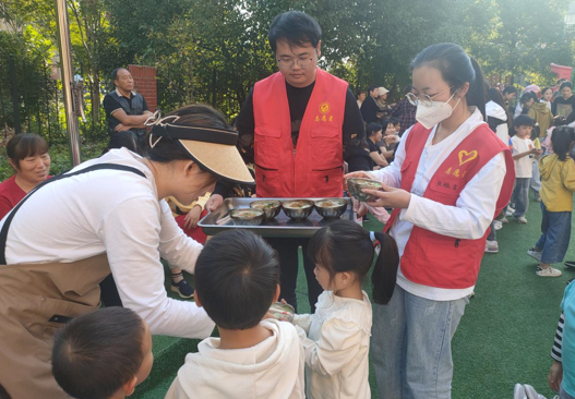 活動分梳頭禮、吃長壽面、親子游戲三個環(huán)節(jié),增加親子之間的互動和交流。活動開始,志愿者給孩子們分發(fā)小梳子,讓小朋友們幫助老人梳頭,為老人做力所能及的小事;隨后,志愿者們將提前準備好的長壽面送到孩子們手中,讓孩子們親自喂給爺爺奶奶吃,感恩老人的付出;最后,志愿者準備了一些有趣的互動游戲,讓小朋友們在互動游戲中了解重陽節(jié)的民俗習慣,懂得尊敬長者,學會在日常生活中如何去關(guān)心愛護長者。