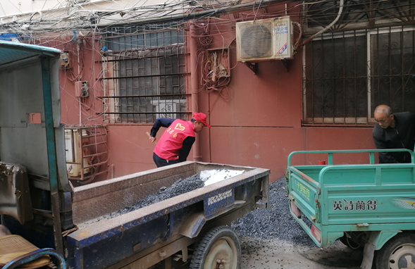 在此次環境整治工作中,對因老舊小區改造遺留下來的沙石和小區內死角處的陳年垃圾及小廣告進行集中清理。