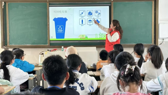 垃圾分類宣傳進學(xué)校,志愿者以通俗易懂的語言為在場的學(xué)生上了一堂生動的垃圾分類課,講解了垃圾分類的重要性和意義,快速地教會大家區(qū)分廚余垃圾、可回收垃圾、有害垃圾、其他垃圾,并對一些容易混淆的垃圾進行了現(xiàn)場講解。