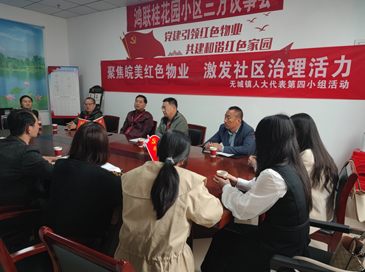 11月10日上午,無城鎮人大第四小組代表深入鴻聯桂花園小區調研“皖美紅色物業”工作,無城鎮人大副主席季愛生、部分市人大代表及鎮人大代表參加,鴻聯物業公司負責人全程陪同調研。