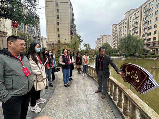 一行人先后實地參觀紅色議事亭、和池、小區共享空間、紅色文化長廊、小區黨群服務站等場所,全面了解“皖美紅色物業示范小區”創建運行情況。