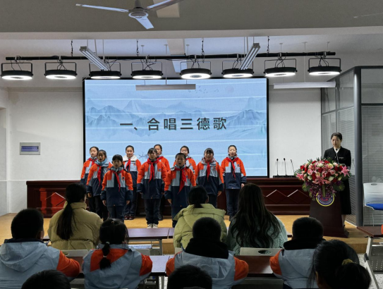 活動在精彩的傳統樂曲表演中拉開了序幕,共分為唱歌曲、學模范、談感悟、誦經典、習禮儀、送吉祥6個環節。學生們同唱《三德歌》,在歌詞中領悟中華民族優秀傳統美德——孝德、誠德、愛德,學習“在家盡孝心,出門講誠信”“誠是連心橋,信是聚寶盆”“人人有愛心,相見滿面春”。