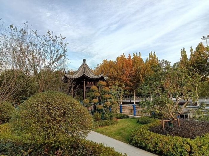 精品工程悅華園位于城南軍二路排澇溝渠兩側,面積約2000平方米,2023年國慶節竣工投入使用。口袋公園通過對現狀溝渠兩側綠地進行改造提升,建設了環形園路、涼亭、親水平臺、兒童活動場地等各種園林景觀和健身休閑設施,為周邊群眾提供觀景、休閑和健身的好去處。
