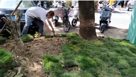 為了充分發(fā)揮水岸怡和花園小區(qū)業(yè)主的主人翁意識和宣傳推廣小區(qū)自治的理念,博瑞宏達物業(yè)公司特邀請業(yè)主及志愿者參與到綠化補種中來,業(yè)主們根據(jù)時間安排提前來到水岸怡和花園B區(qū)綠植補種區(qū)。活動現(xiàn)場,大家一起動手做著鋪綠植的準備工作。有的揮著鐵鍬清理著雜草,有的舞著釘耙摟著碎石塊,有的把苗木一顆顆運到種植區(qū)域。萬年青、草皮、草籽……物業(yè)人員一邊領(lǐng)栽種植物,一邊對業(yè)主們進行科普,業(yè)主們也在栽種過程中拓寬了知識面,增強了保護小區(qū)環(huán)境的意識。盡管當天35度的高氣溫,熱得脫去外套擼起了袖子,也止不住豆大的汗珠順著臉頰流下來,卻絲毫影響不了大家的熱情。通過活動的開展,業(yè)主們在享受勞動快樂的同時,也給小區(qū)增色添彩,進一步提升居民的獲得感和幸福感。