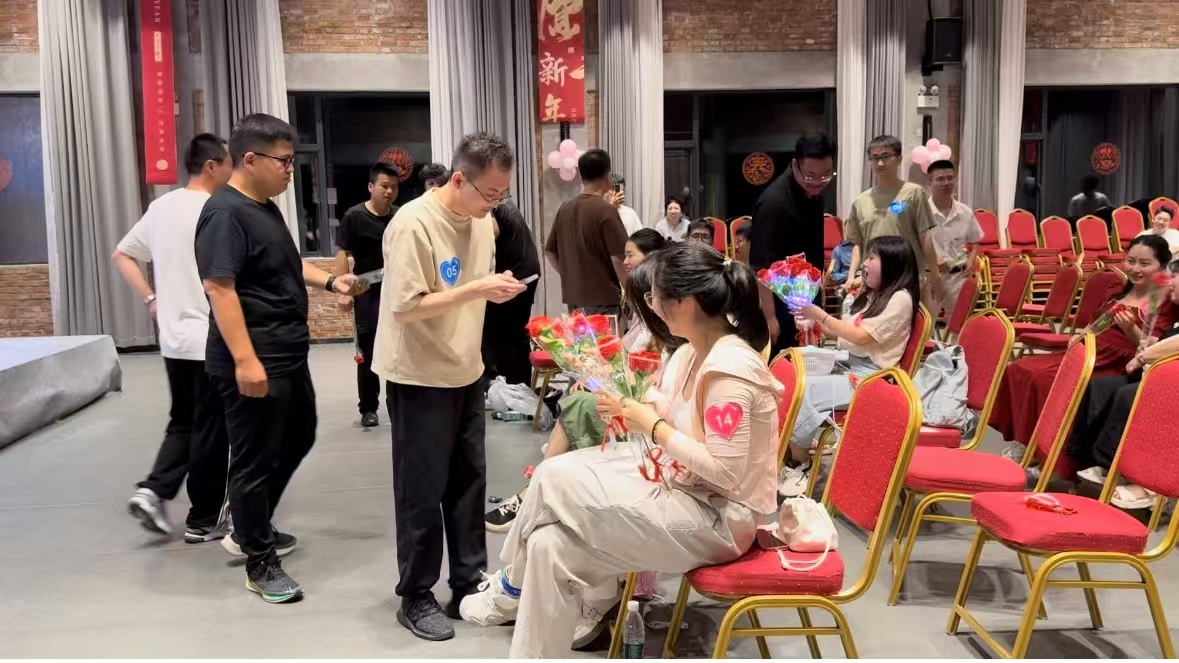 最后的玫瑰傳戀環(huán)節(jié)中,男女嘉賓真情告白、勇敢示愛。在所有人的共同見證下,2對單身青年互贈玫瑰,交換聯(lián)系方式,為本次活動畫上了圓滿的句號。