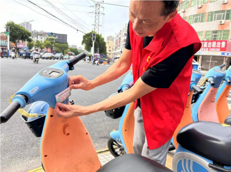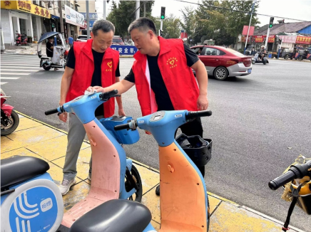活動開始前,志愿者們早早來到社區樓下集合,在社區工作人員的帶領下來到老南門車站斜對面的共享單車停車點,將馬路中亂停放的共享單車有序擺放在停車位。并對單車進行清潔,大家同心協力,忙得熱火朝天,經過大家的努力,讓它們的面貌煥然一新。
