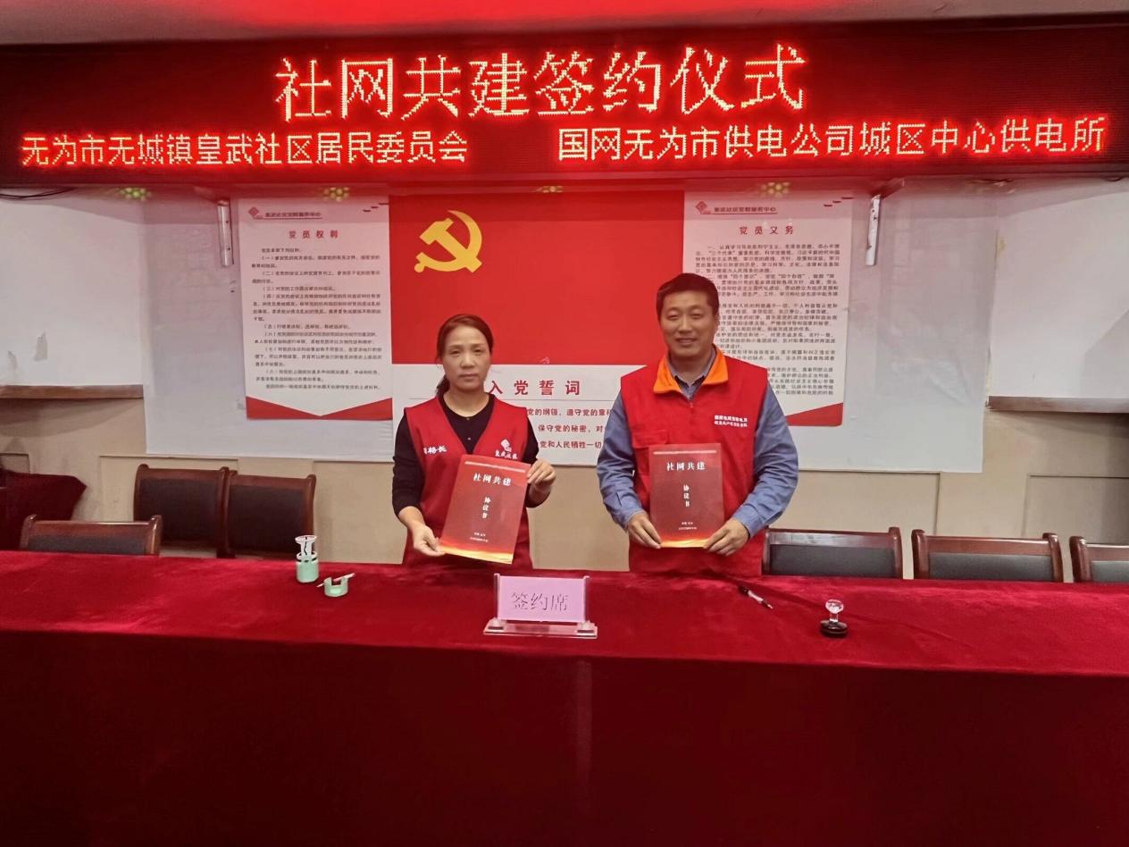 社網共建,為用電護航。10月16日下午,無城鎮皇武社區與國網無為市供電公司城區中心供電所在皇武社區會議室成功舉辦了“社網共建”協議簽訂儀式。儀式上,無城鎮皇武社區黨總支書記同國網無為市供電公司城區中心供電所的代表簽署了共建合作協議,標志著雙方在黨建引領、服務居民、保障居民用電等方面將開展更加緊密和深入的合作,將供電服務延伸到最末端,確保以最快的速度為居民提供電力保障。有效打通供電服務“最后一公里”,實現居民辦電“一站式服務”模式,用心用力為居民用電保駕護航。