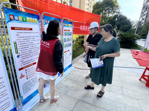 活動(dòng)現(xiàn)場(chǎng),西苑社區(qū)工作人員、電梯維保公司技術(shù)人員以及國(guó)家電網(wǎng)的工作人員早早來(lái)到桂花園小區(qū),擺放宣傳展板,準(zhǔn)備宣傳資料。宣傳活動(dòng)正式開(kāi)始,立刻吸引了眾多小區(qū)居民駐足參與。
