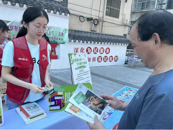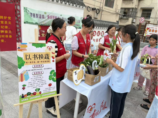 圖書中轉站前,不少居民拿著家中閑置的書籍前來兌換,“這幾本書家里小孩看完就閑置了,拿來兌換綠色蔬菜正好。”