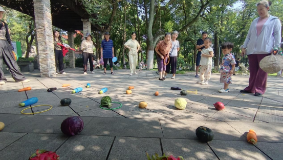 活動現場,居民們排著整齊的隊伍,眼神緊緊盯著前方擺放的新鮮蔬菜,輪到自己時,屏住呼吸、瞄準投擲,套中的歡呼聲與沒套中的打趣聲交織在一起。等待的間隙里,大家也不閑著,熟絡地分享著套圈小技巧:“手要穩,瞄準蔬菜根部扔”“力度輕一點,圈才不容易彈開”,你一言我一語,陌生感在不知不覺中消散。