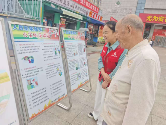 活動現場,濱湖社區工作人員擺放了宣傳展板,以醒目文字提醒大家做好火災預防,告知大家做好防范措施。社區工作人員熱情且耐心地對過往行人就有關火災預防和防范措施進行詳細的講解,并叮囑居民們做好日常防范工作,加強消防安全意識。