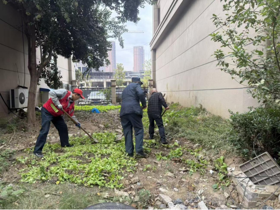 11月4日,龍云社區聯合誠和物業開展“毀綠種菜”集中整治行動。當天上午,由社區工作人員、物業工作人員組成的整治隊伍,攜帶鐵鍬、鋤頭等工具,對小區內6處 “毀綠種菜” 區域進行清理。整治過程中,對于居民種植的成熟蔬菜,工作人員還會提前通知居民采收,盡量減少居民損失。整治行動完成后,龍云社區也立即督促小區物業要及時對裸露的土地進行平整,并鋪設草坪,恢復小區美好的居住環境。