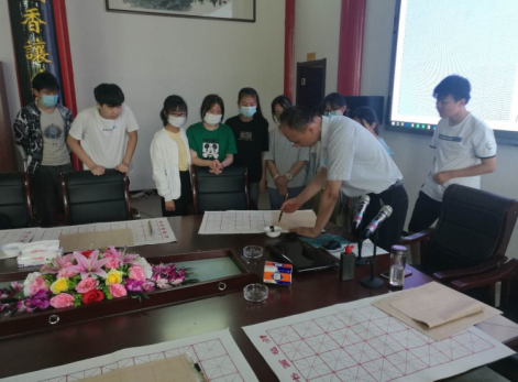 渡江書畫院為高溝鎮其中的新時代文明實踐點,書畫院人才濟濟,一眾成員在書法、繪畫領域各有千秋。本次書法課程主授為渡江書畫院副院長趙鵬飛,他以行、草見長,擅畫花鳥。在5月份的一場文明實踐活動中,趙鵬飛聽聞高溝初級中學一眾學生對書法藝術頗具向往之情,作為志愿者,他主動向鎮新時代文明實踐所要求,請赴接洽校方,高溝初級中學也欣然征集了學生意見,最終在踴躍報名的學生中挑選十位,利用周六課余時間,參加此次文化活動。