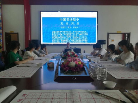 書法藝術培訓課的地點選址在三溝文化研究中心(鎮新時代文明實踐點之一),這里同時也是高溝鎮唯一一所祠堂所在處。其建筑青瓦朱欄,斗檐飛拱,屋內陳設精致,極富古典韻味。早晨八時在廳堂的會議桌處,趙鵬飛正式開始授課,他以文字起源為切入,一路旁征博引,結合歷代傳世的書法作品,講述我國書法藝術璀璨歷程,增強學生見聞,激發其濃厚興趣。接著,他進行基本功教學,從運筆開始做示范,傳授筆畫書寫要訣。學生們的座位上,毛氈筆墨紙俱全。對于初學者而言,控筆難度較大,稍不注意就會泅成一片,為此,教學過程盡量做到了細致明了,切中肯綮。在練習過半時,趙鵬飛對學生們一一做出指導,根據個體情況因材施教。經過一番牛刀小試,學生們的藝術本領得到普遍提高,在培訓課走向結束時,仍然在思考討論筆鋒流轉,有所回味。