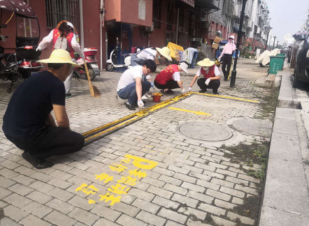 第三步,濱湖社區書記安排社區所有工作人員在小區合適位置劃設非機動車位1500個;安裝便民晾曬桿170根;清理樓道雜物約26車;