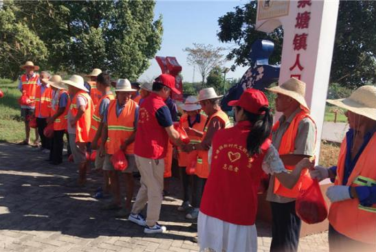 9月7日,泉塘鎮黨政負責人帶領新時代文明實踐所志愿服務隊在該鎮文體廣場慰問環衛工人,感謝他們為農村生活垃圾治理和人居環境整治做出的巨大貢獻。