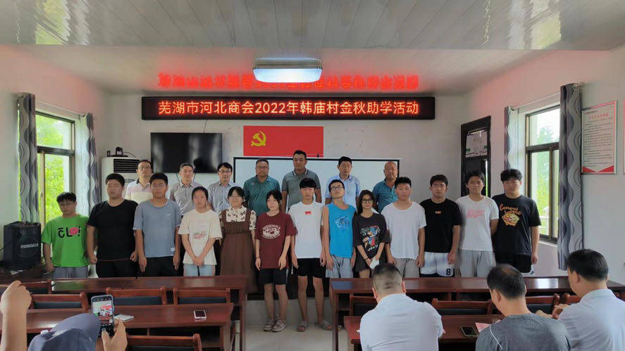 8月18日,蕪湖市河北商會2022年韓廟村金秋助學活動在韓廟村舉行。在市檔案館、蕪湖市河北商會、泥汊鎮韓廟村駐村工作隊相關負責同志的精心組織下,為今年考上大學的19名學生送上了每人1000元的助學金,勉勵他們好好學習、早日成才,為家鄉發展做出貢獻。