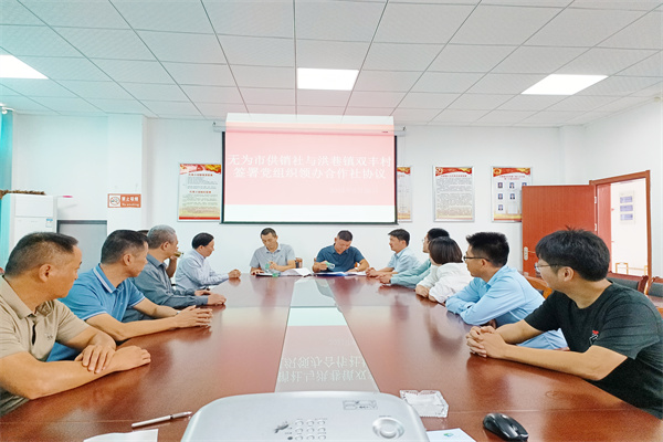 9月26日上午,無為市雙惠供銷合作社有限公司舉行了簽約儀式,標志著無為市供銷系統首家黨組織領辦的村級合作社正式成立;該公司注冊資本為100萬元,采用“村集體經濟+合作社+農戶”的發展模式,由無為市洪巷鎮雙豐村股份經濟合作社持股75%,無為市聯興投資有限公司持股20%;雙豐村在崗兩委干部共同持股5%,雙豐村黨總支書記何家朋為公司法人,旨在促進市供銷社完善基層服務網絡、村級發展集體經濟、村民實現增產增收。該村級社的建立,標志著一種新型的農業經營方式在無為市誕生,是無為市供銷社、洪巷鎮黨委踐行“黨建引領、村社共建”發展理念的成功探索。簽約儀式由洪巷鎮鎮長胡超主持,無為市供銷社黨組書記、理事會主任劉映彬,黨組成員魏樹生,無為市聯興投資有限公司法人李志剛,鎮黨委書記陳赟、副書記陳小娟,駐村工作隊隊長楊成貴等參加。
