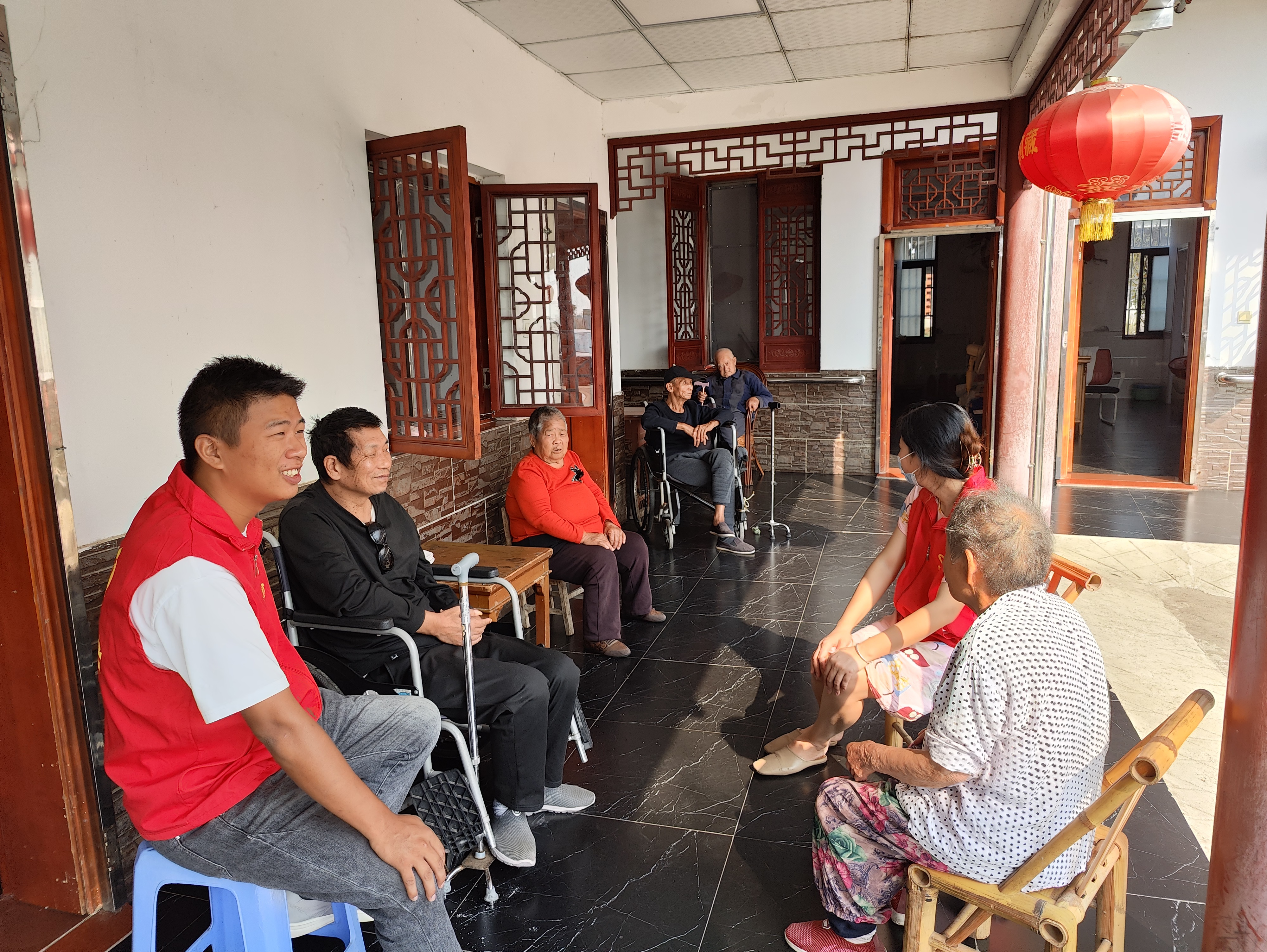 活動現場,志愿者們與老人們親熱交談,閑話家常,了解他們的身體和生活情況,并送上節日的美好祝福。