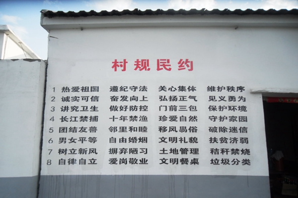 圖為書寫于居民墻體的“村規民約”。
