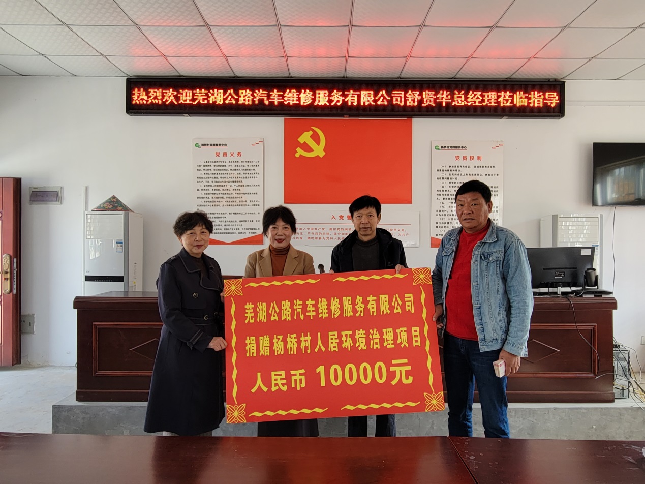 蕪湖公路汽車維修服務有限公司舒賢華總經理表示,參與公益事業(yè)是公司企業(yè)文化的一部分,助力鄉(xiāng)村發(fā)展、積極回報社會是公司一直堅守的理念。本次捐贈是公司踐行社會責任、助力鄉(xiāng)村振興的具體行動,未來公司將繼續(xù)與楊橋村攜手,合力推進鄉(xiāng)村人居環(huán)境改善、困難學生資助、五保老人慰問等活動。