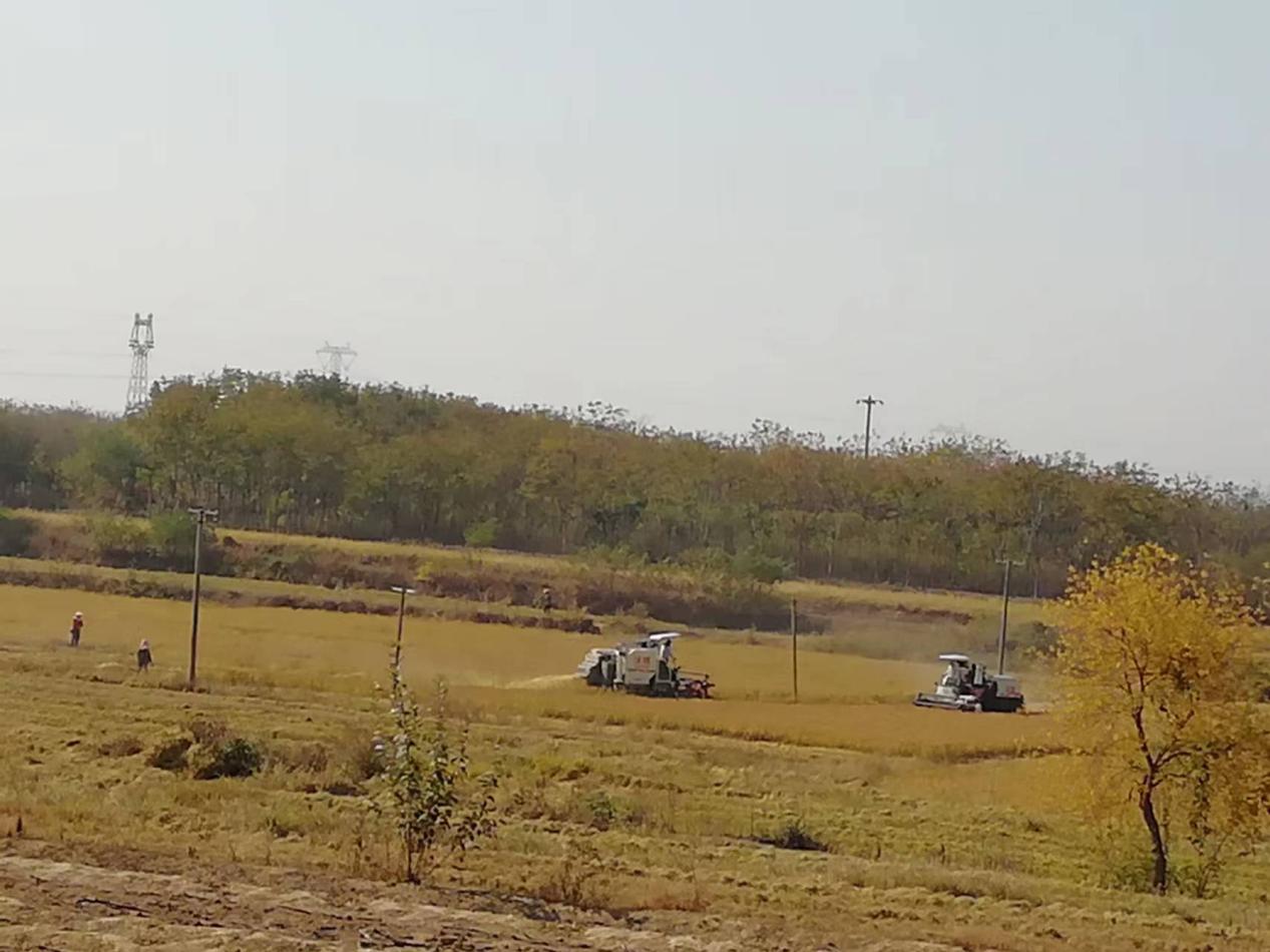 金秋時節,一臺臺收割機在金黃色的田野里來回穿梭,金燦燦的稻谷流入運糧車,忙碌的農民滿臉洋溢著豐收的喜悅,歡聲笑語蕩漾在田野上,匯成豐收的風景畫。