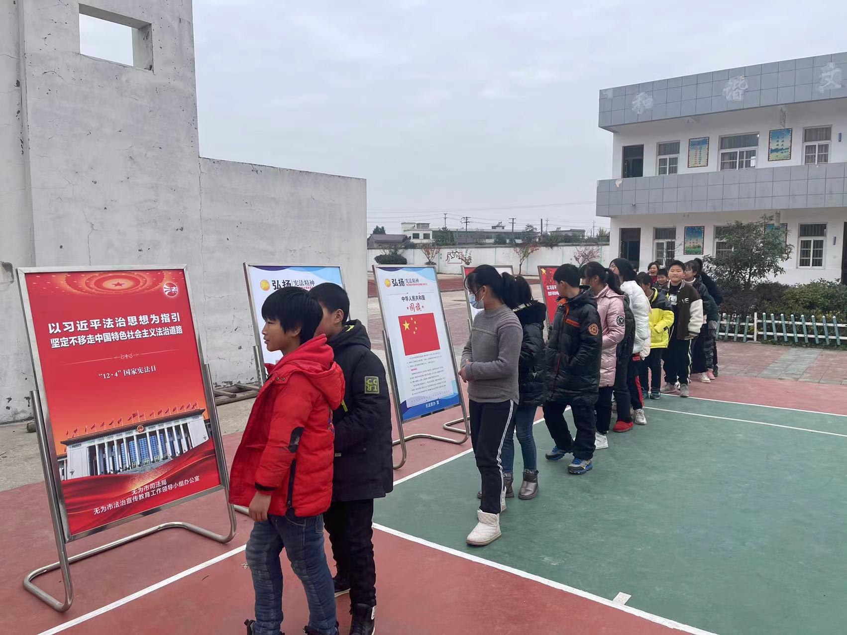 當天下午,泥汊司法所還通過擺放展板的形式,向全校師生直觀展現我國憲法的歷程、國家憲法的由來、國旗、國歌、國徽等內容,增進廣大師生對憲法知識的了解,牢固樹立憲法至上的理念,讓全面貫徹實施憲法,更好發揮憲法在治國理政中重要作用的思想在小學生心中生根發芽。