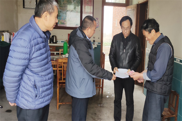 全覆蓋排查,確保底數清。工作隊聯合村干部對特困戶、低保戶、殘疾戶、大病戶等困難群體,通過電話、微信、實地走訪等方式,進行全覆蓋摸排,及時了解困難群眾家庭情況和救助需求,做到底數清、情況明、數據準。針對許朝虎等5戶監測戶,每戶各明確1名村干部和1名市局干部進行包保,一戶一策,分類幫扶。37歲的村民江兵兵罹患晚期肝癌,工作隊第一時間送去慰問金1萬元,并號召廣大黨群積極捐款,共收到80人捐出的13700元。