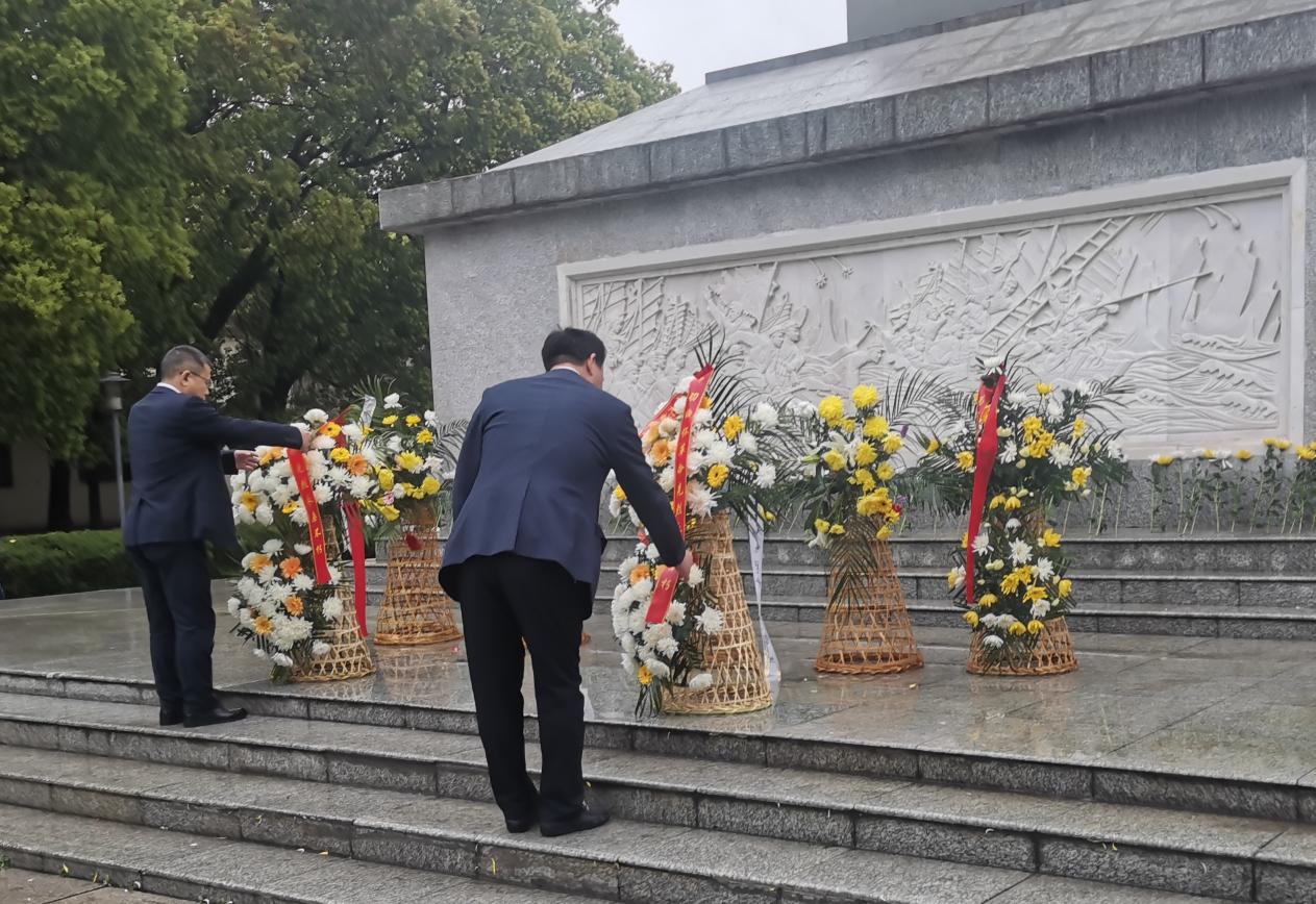 鮮花獻(xiàn)英烈、哀思祭忠魂。鎮(zhèn)黨委書記趙世宏、鎮(zhèn)人大主席毛少華首先上前敬獻(xiàn)花籃并整理緞帶。全體人員集體默哀致意,面朝烈士墓三鞠躬,向長眠地下的革命先烈們表達(dá)致以最崇高的敬意。