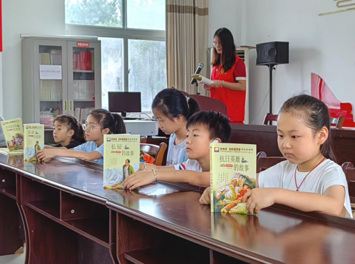 活動現場,由志愿者領學《井岡山的故事》之《朱德的扁擔》等紅色故事,與孩子們共同閱讀他的革命事跡,向孩子們講述當兵時代的崢嶸歲月。此外,孩子們還津津有味地閱讀了《抗日英雄的故事》《長征的故事》《鐵道游擊隊的故事》等紅色讀物。