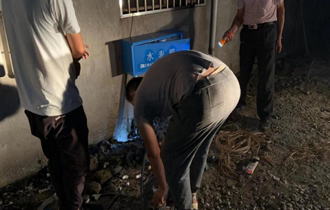 (圖為工作人員在對7個自然村,143戶村民進行的水路改造工作完成后,進行安裝水表,并逐戶排查是否有漏水之處,測試水壓,進行二次檢查與修理。)
