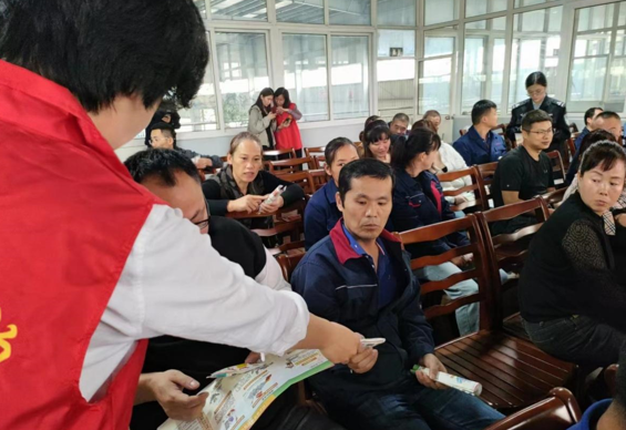 工作人員積極組織企業職工參與“反邪教”有獎知識問答,現場反邪教氛圍濃厚。