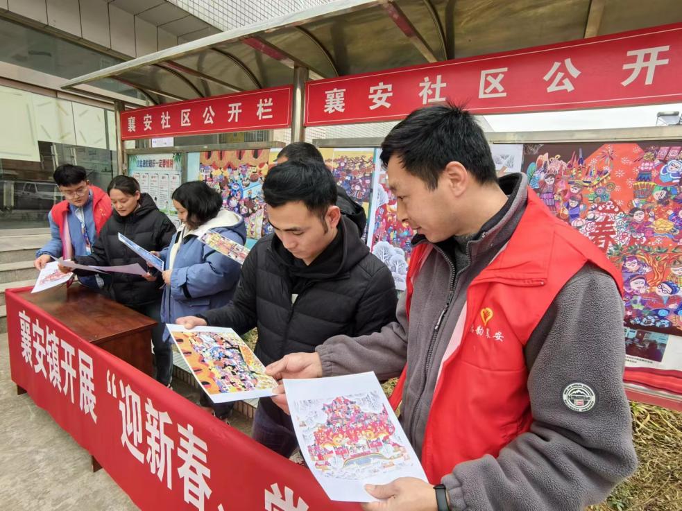 “這年畫真好看,上面的各個少數民族的娃娃們穿著各式各樣的民族服飾,手拿著琵琶、鑼鼓、嗩吶共賀新春、畫面真的栩栩如生,不僅孩子喜歡、大人也喜歡,謝謝你們,我把這畫帶給我家娃,她一定會很開心的。”襄安社區張大叔拿著志愿者們送的年畫,笑著說道。
