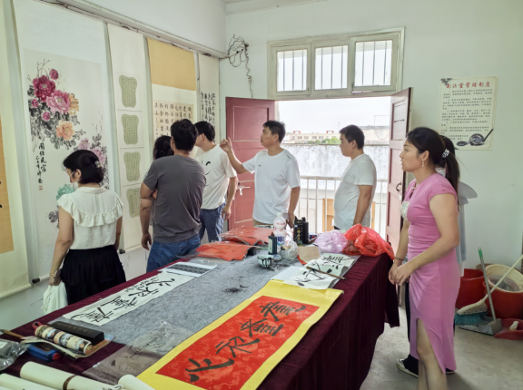 活動中,文化志愿者帶領群眾共同閱讀15分鐘,讓群眾在繁忙的工作之余體會閱讀過程中的恬靜。隨后,大家來到書法活動室,在志愿者的介紹下賞析陡溝鎮書法家的作品,品讀書法藝術的魅力。最后,在影視播放室志愿者為群眾播放了愛國主題電影《建國大業》,通過電影吸引群眾積極參與文明實踐活動,傳播愛國主義思想。