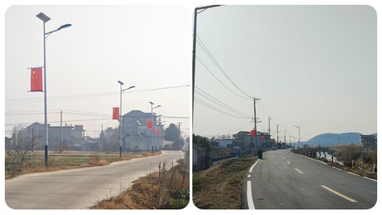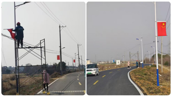 春節將近,楊橋村工作隊與村“兩委”共同磋商、積極籌集資金,開展國旗懸掛工作,利用新建的路燈桿懸掛國旗,處處洋溢著“中國紅”,營造喜慶祥和的節日氛圍。