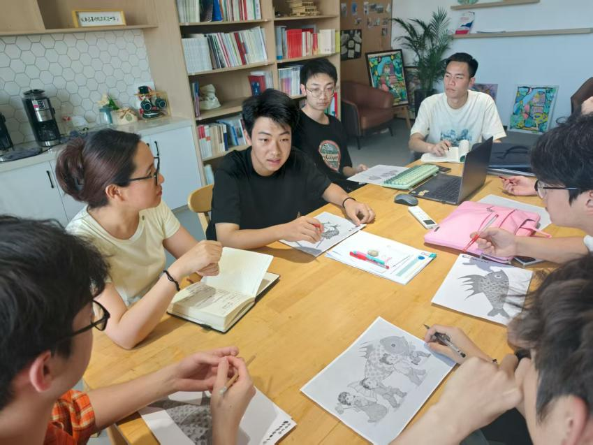 妙筆繪燈影,非遺煥新顏。實(shí)踐團(tuán)以承載百姓豐收、平安、吉祥祈愿的無(wú)為魚(yú)燈為核心元素,深入挖掘其民俗內(nèi)涵。學(xué)子們運(yùn)用現(xiàn)代設(shè)計(jì)語(yǔ)言,將傳統(tǒng)魚(yú)燈文化進(jìn)行創(chuàng)新性藝術(shù)轉(zhuǎn)化?!拔覀兿M馨阳~(yú)燈這一民俗‘翻譯’得讓更多人看懂、喜歡。”負(fù)責(zé)主視覺(jué)構(gòu)圖的2024級(jí)視覺(jué)傳達(dá)專業(yè)學(xué)生陳浩然介紹道。他們?cè)谠O(shè)計(jì)中巧妙融入節(jié)日元素,力求畫(huà)面既展現(xiàn)文化底蘊(yùn),又富有親切感與時(shí)代氣息,讓沉睡的非遺在墻面上煥發(fā)出勃勃生機(jī)。