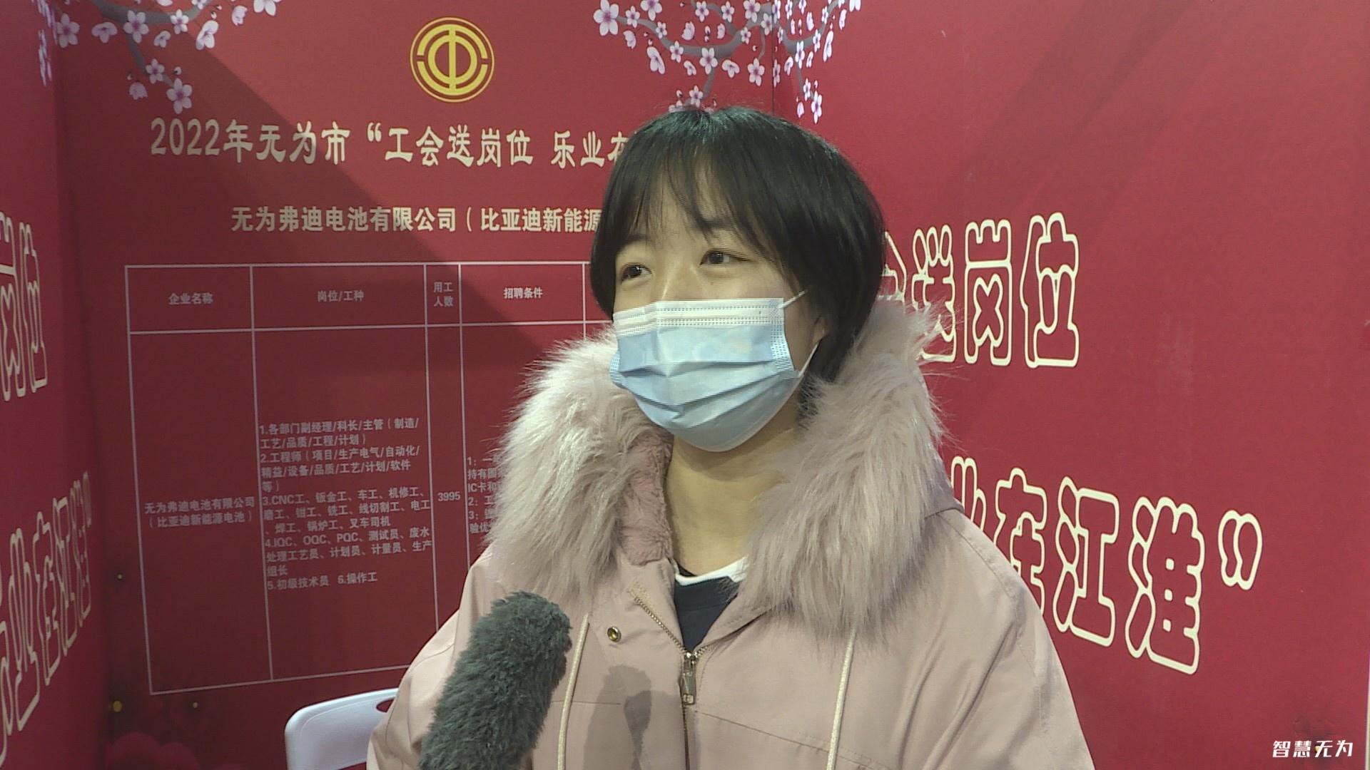 無為弗迪電池有限公司華東人事科湯榮榮告訴記者:“我們現(xiàn)在招聘崗位也是蠻多的,比如說像我們管理崗有副經(jīng)理,科長,車間主任這些,包括基層管理,宣傳領班也有在招,包括技工崗位,都是有在招聘的,因為我們比亞迪也是無為本土企業(yè),我們這邊會給我們的當?shù)氐囊恍┤藛T帶來一些比較好的優(yōu)惠措施。”