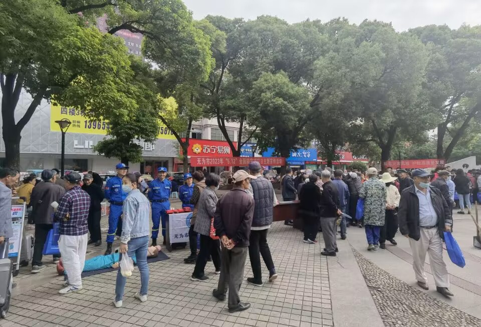 5月12日上午8時,無為市第十五個全國防災減災日主題宣傳活動在無城鎮十字街人民廣場舉行。