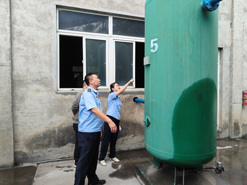 在部分特設(shè)使用單位,該所執(zhí)法人員對(duì)在用壓力容器、電梯、鍋爐等進(jìn)行了仔細(xì)檢查。一看現(xiàn)場,查特設(shè)正常運(yùn)行情況,有無加貼周期檢定合格標(biāo)簽,各項(xiàng)安全管理制度有無上墻;二查主體責(zé)任落實(shí)到位情況,看使用單位應(yīng)急預(yù)案制定、每日運(yùn)行前自查、特設(shè)周期維保及年度檢測以及作業(yè)人員持證上崗等各項(xiàng)安全管理制度執(zhí)行情況。