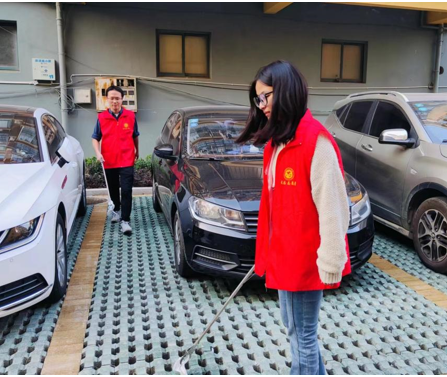 志愿者們穿上紅馬甲,檢查路面、井蓋是否破損,垃圾桶是否整潔,小區樓道是否亂堆亂放,是否亂拉電線違規充電,停車秩序等。與此同時,志愿者們還積極撿起了路面的枯葉、垃圾,為小區環境整治工作貢獻自己的力量。
